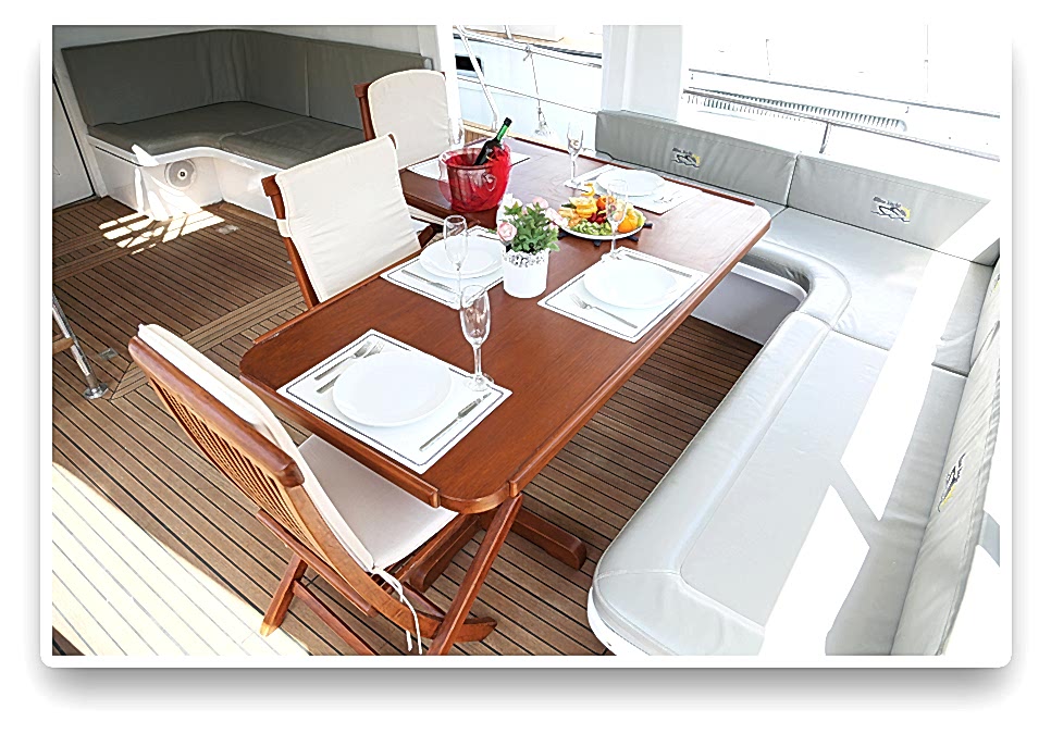 Normal Kabin, Salon, TV, Multimedya, Klima, Balık Tutma Ekipmanları (Bardak ve Şnorkel), WC, Duş